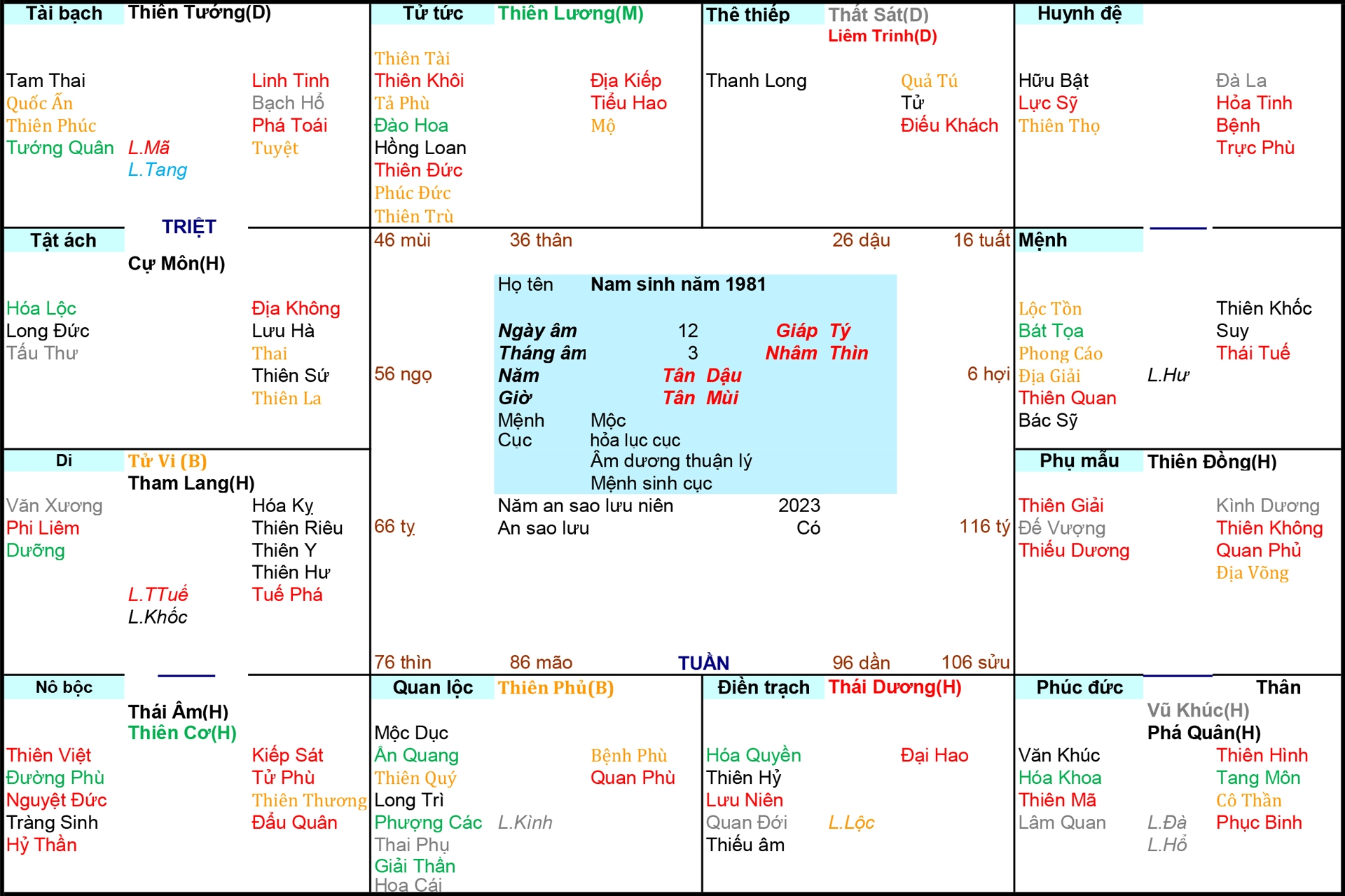 Lá số tử vi 1981 Tân Dậu tổng quan chi tiết