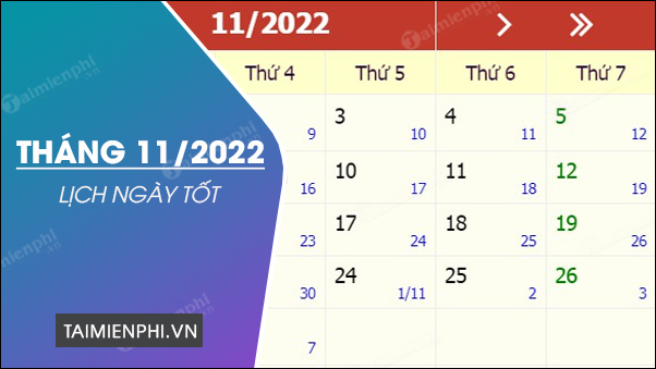Lịch Ngày Đẹp Tháng 11 Âm 2022
