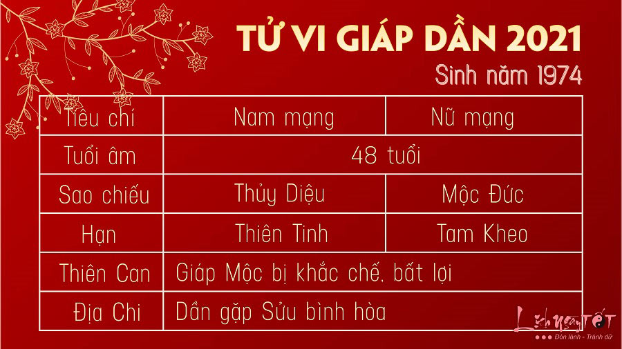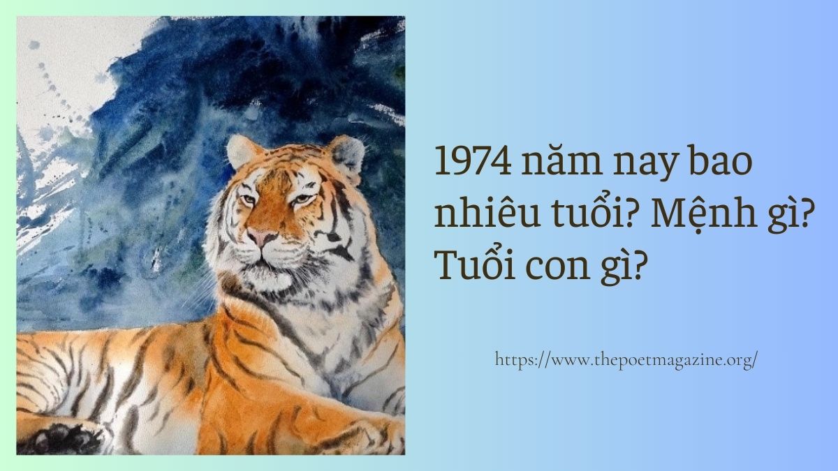 Sinh năm 1974 là năm đánh dấu sự xuất hiện của một thế hệ với nhiều đặc trưng riêng, cả về mặt tuổi tác, bản mệnh và phong thủy. Nếu bạn hoặc người thân sinh ra vào năm này, chắc hẳn sẽ quan tâm đến các thông tin như: sinh năm 1974 bao nhiêu tuổi, thuộc tuổi con gì, mệnh gì, hợp màu sắc, hướng nhà và tuổi nào. Bài viết dưới đây sẽ giúp bạn giải đáp tất cả những thắc mắc này một cách chi tiết và dễ hiểu nhất, giúp bạn hiểu rõ hơn về tuổi 1974 cũng như các yếu tố liên quan.