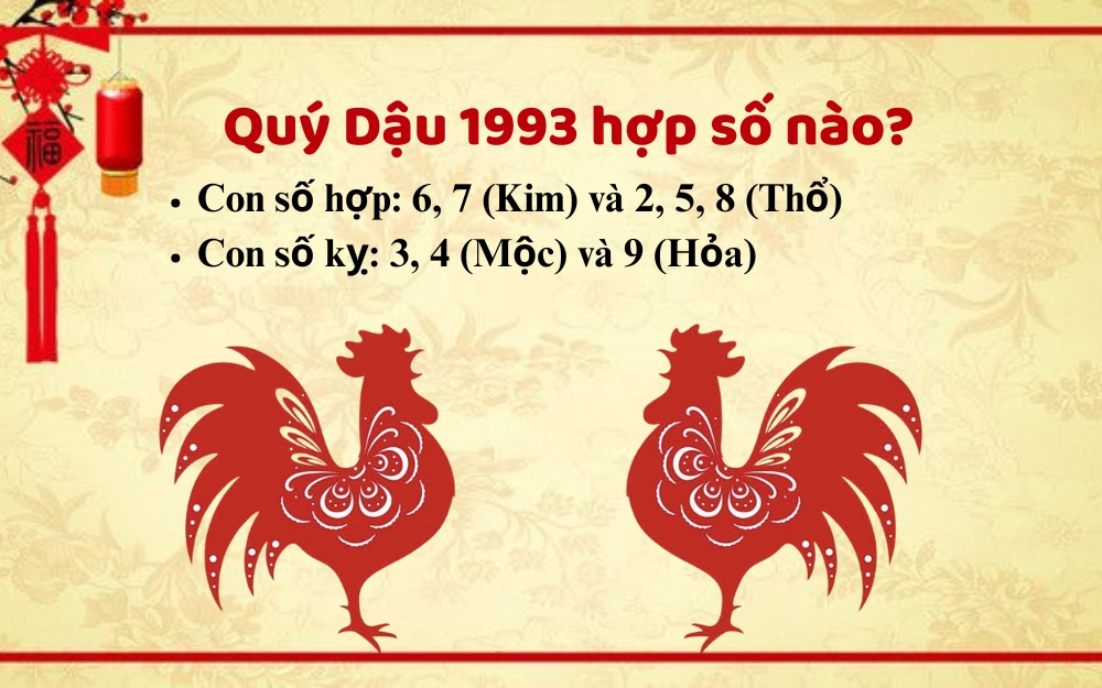 Mệnh Kim của tuổi Dậu gặp năm Thổ tuy không có nhiều điểm nổi bật nhưng vẫn duy trì được sự ổn định. Những người sinh năm 1993 rất may mắn khi có thể hợp tác với những người tuổi Sửu và Tỵ để đạt được thành công, còn lại nên tránh những người tuổi Tý, Ngọ, Mão.