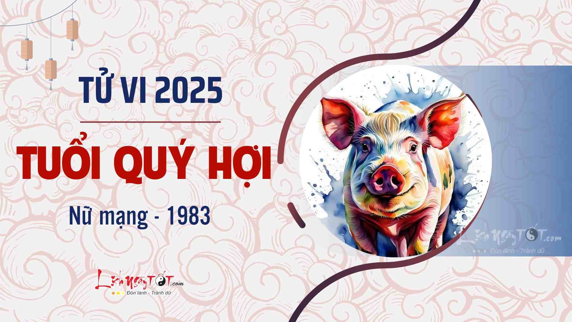 Nữ mạng tuổi Quý Hợi sinh năm 1983 có một cuộc đời đầy thăng trầm. Những năm đầu đời thường gặp nhiều khó khăn và lo lắng. Tiền vận và trung vận không mấy an nhàn, thường xuyên phải đối mặt với những khúc mắc, suy tư, buồn phiền. Tuy nhiên, đến hậu vận, cuộc sống sẽ dần thay đổi theo hướng tích cực hơn.