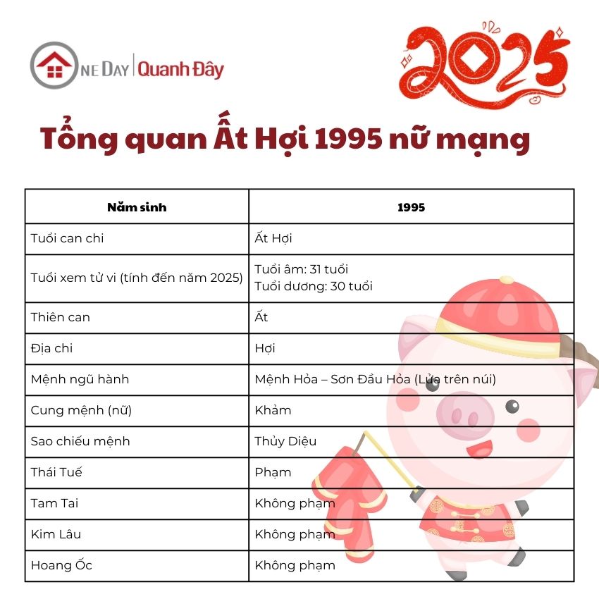Năm 2021 mang đến nhiều biến động về vận trình cuộc sống cho nữ mạng tuổi Ất Hợi 1995. Việc xem tử vi, dự đoán vận hạn, tài lộc và sức khỏe sẽ giúp bạn chủ động hơn trong năm mới, hóa giải khó khăn và tận dụng những cơ hội tốt. Bài viết dưới đây sẽ tổng hợp chi tiết tử vi tuổi Ất Hợi 1995 nữ mạng năm 2021 trên các phương diện: công việc, tình duyên, cuộc sống gia đạo, màu sắc phong thủy hợp tuổi cần lưu ý cũng như các biện pháp hóa giải vận hạn và những lời khuyên hữu ích giúp bạn bình an, may mắn hơn trong năm Tân Sửu.