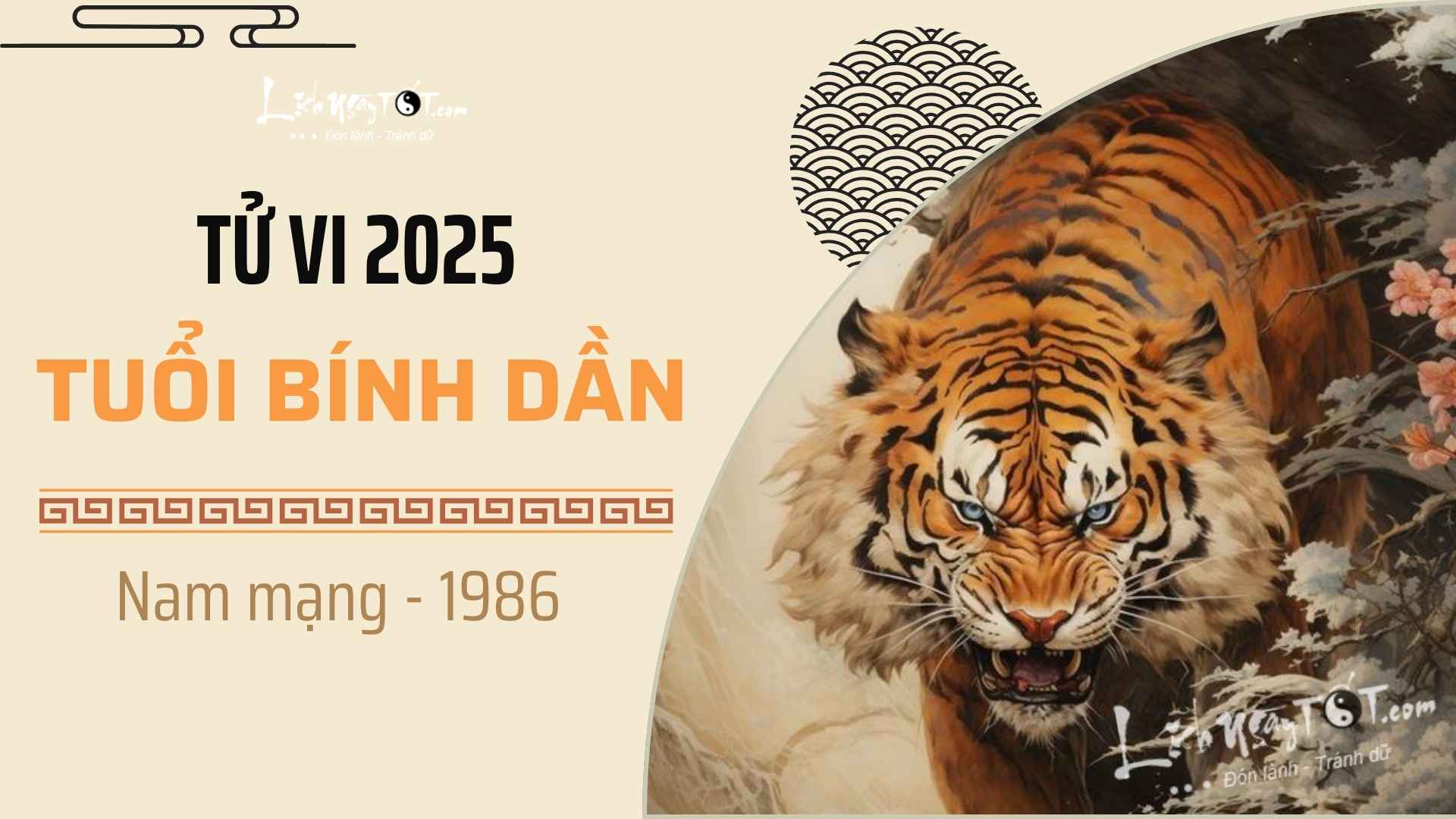 Nam mạng Bính Dần 1986 lại có những vận mệnh khác. Họ có những tháng năm thử thách, nhưng nhờ sự quyết tâm và tự tin, họ sẽ có được thành công cả trong công danh lẫn tình cảm. Tới năm 2025, dự báo tình duyên của họ sẽ nở rộ, cùng với sự trợ giúp của những người xung quanh, mở ra nhiều cơ hội mới trong cuộc sống.