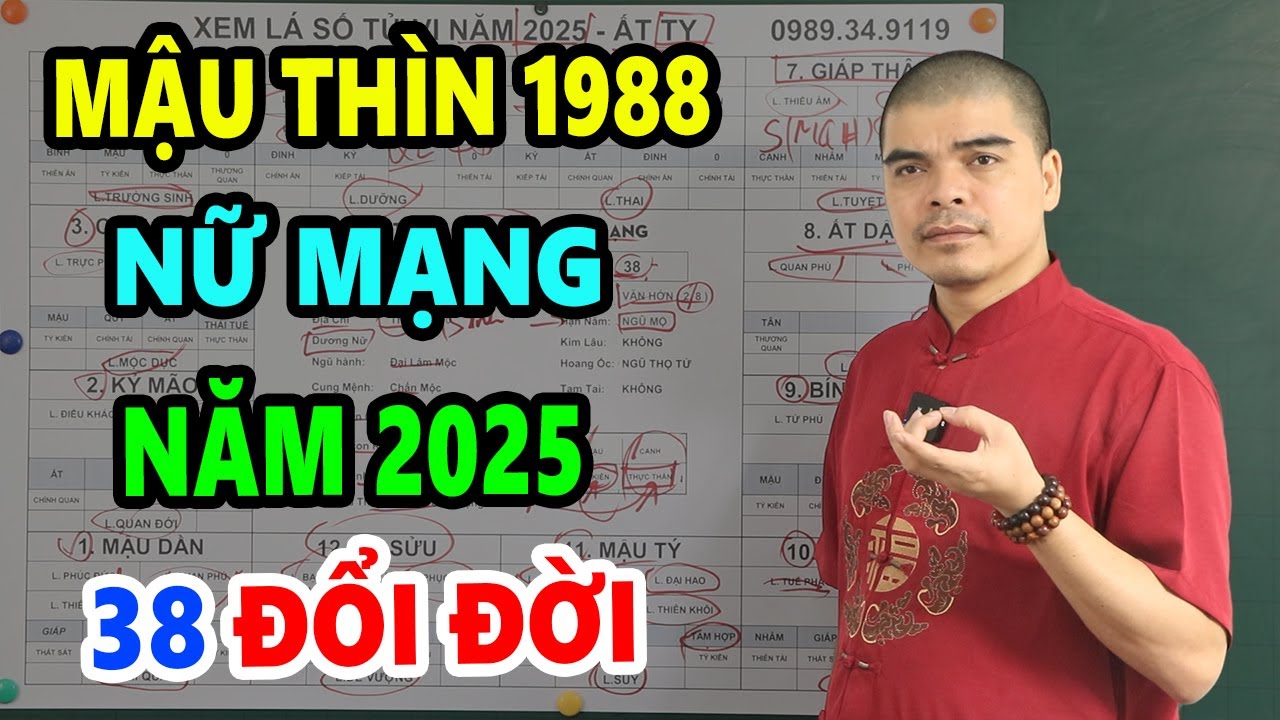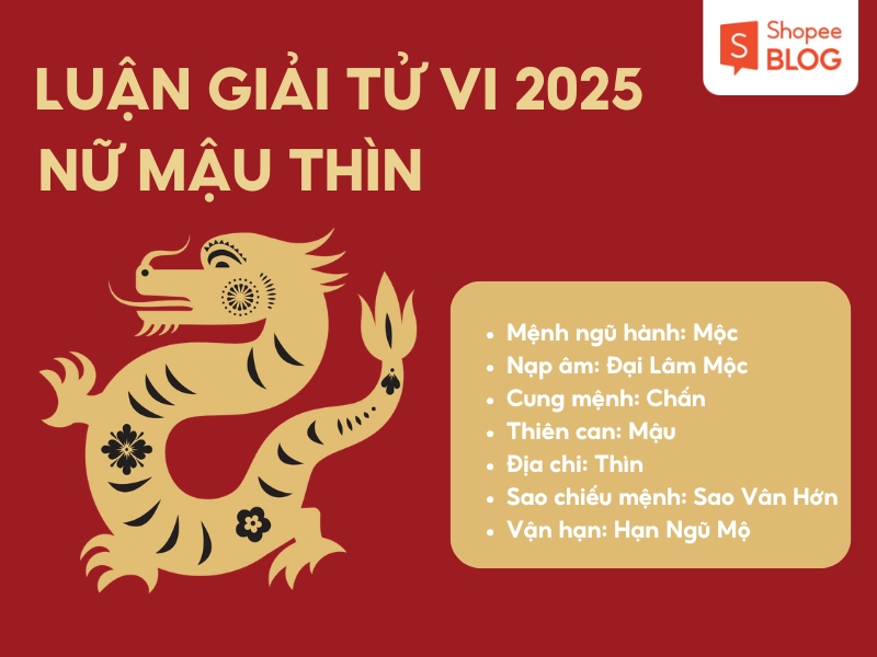 Năm 2025 hứa hẹn mang đến nhiều thay đổi và cơ hội mới cho nữ mạng tuổi Mậu Thìn. Bước sang năm Giáp Tý với nhiều hy vọng, song cũng không ít thử thách đòi hỏi sự chủ động và bản lĩnh. Việc tìm hiểu tử vi năm 2025 sẽ giúp quý cô sinh năm 1988 chủ động hơn trong công việc, tình duyên, tài lộc, cũng như biết cách hóa giải vận hạn, lựa chọn màu sắc, hướng làm nhà phù hợp… Bài viết dưới đây sẽ phân tích chi tiết tử vi nữ mạng Mậu Thìn năm 2025 trên mọi phương diện để bạn có sự chuẩn bị tốt nhất cho năm mới.