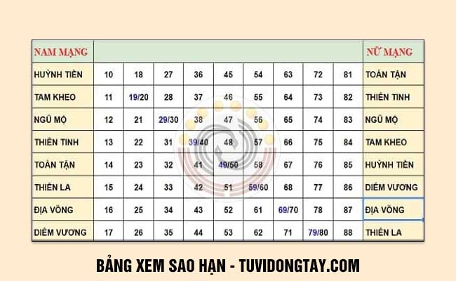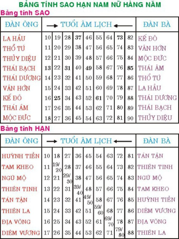Xem Bảng Sao Hạn Năm 2020 dự báo vận mệnh