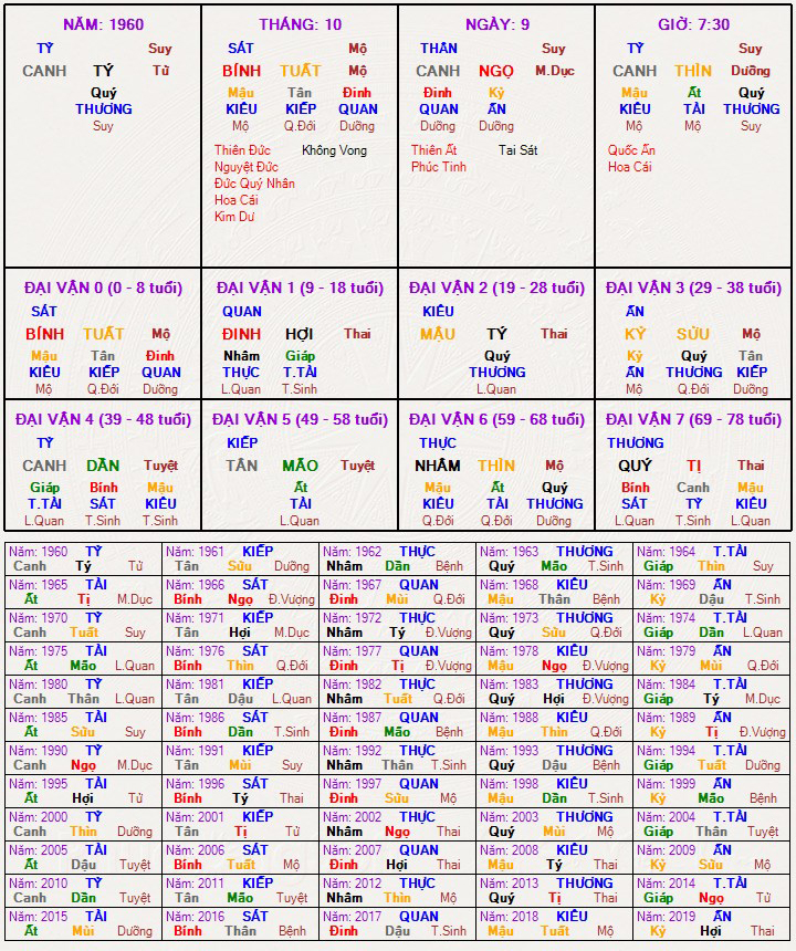 Xem bói vận mệnh theo ngày tháng năm sinh là một phương pháp thú vị giúp bạn hiểu rõ hơn về bản thân và cuộc sống của mình. Bảng tra cứu tử vi trọn đời theo tuổi Lục thập hoa giáp mang đến những thông tin chi tiết về tài lộc, sự nghiệp, tình duyên và gia đạo. Khi kết hợp với giờ sinh, bạn có cơ hội khám phá sâu hơn về lá số tử vi của mình.