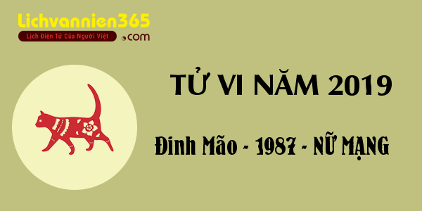Năm 2019 là một năm đầy thách thức đối với những người tuổi Đinh Mão sinh năm 1987. Với năm Kỷ Hợi, họ sẽ phải đối mặt với nhiều khó khăn trong công danh và sự nghiệp. Công việc có thể gặp trở ngại, và tài chính cũng không mấy khả quan, nên việc quản lý chi tiêu cẩn thận là điều cần thiết.