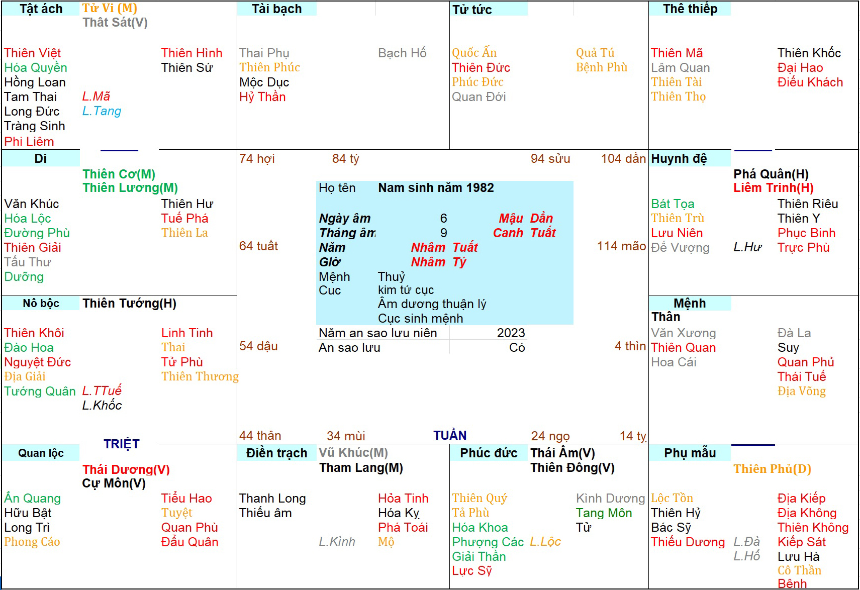 Tử vi tuổi Nhâm Tuất 1982 nữ mạng cho thấy một bức tranh sinh động của cuộc đời, nơi mà thăng trầm và cơ hội thời cơ đan xen. Những người sinh năm này thuộc mệnh Thủy, cụ thể là Đại Hải Thủy, cho thấy họ có tính cách mạnh mẽ, năng động và hào phóng. Do tính chất của mệnh Thủy, con đường sự nghiệp của họ thường khá thuận lợi, giúp họ vượt qua nhiều khó khăn.