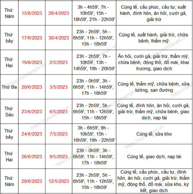 Ngoài ra, việc tra cứu những ngày tốt xấu cũng giúp mọi người chọn được thời điểm phù hợp cho các kế hoạch lớn trong đời. Hãy theo dõi thông tin này để có những quyết định đúng đắn, mang lại may mắn cho bản thân và gia đình trong suốt tháng 6 này nhé!
