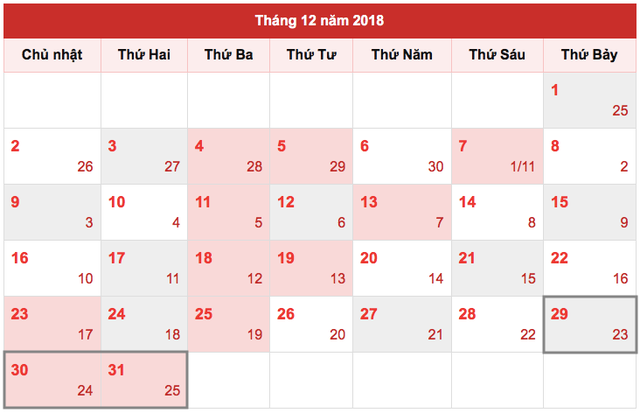 Tháng 12 năm 2019 là thời điểm cuối cùng của năm Kỷ Hợi, vì vậy việc xem ngày đẹp tháng này trở nên đặc biệt quan trọng. Xem những ngày tốt xấu theo lịch âm sẽ giúp bạn chọn ra những thời điểm thích hợp cho các sự kiện lớn như cưới hỏi hay khai trương. Ngày 24 tháng 12 dương lịch, tương ứng với 29 tháng 11 âm lịch, là một ngày hoàng đạo với Can Chi Ất Mùi rất đáng lưu ý.